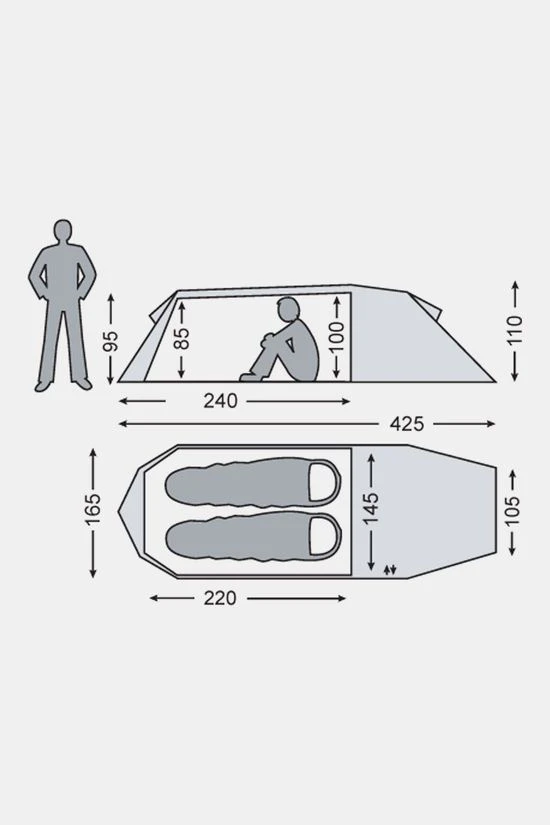 - De Oppland 2 heeft zowel aan de voor als aan de achterzijde een ruime ventilatie opening zodat er altijd frisse lucht kan circuleren. Dit zorgt er voor dat het binnenklimaat van deze tent altijd perfect is.